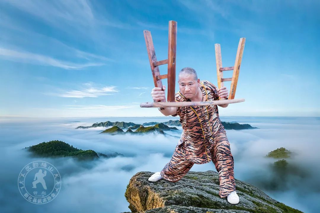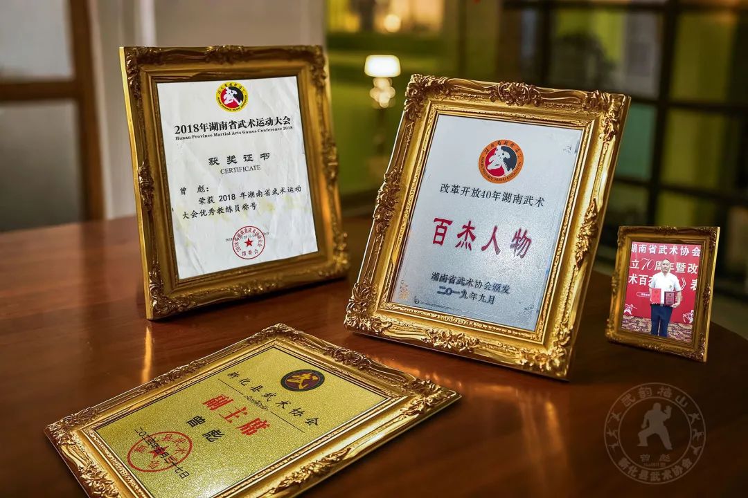 梅山腹地新化县为全国著名武术之乡,新化曾氏练武之风自宋时泰谕公迁来时就开始了,历史上新化曾姓出了四个武举。而科头乡曾彪家族的习武传统可追溯至清代。据传祖上六老公公曾随曾国藩办团练传授功夫,一柄128斤大刀闯荡江湖、行侠仗义,更以“封刀接骨”的医术悬壶济世,尤擅长无名肿毒、跌打损伤。曾彪爷爷就是六老公公四位徒弟中最为器重的一位,家风严谨,仁义好施,为百姓治疗不取分文。这份融武医于一体的家学,使得曾彪幼年时便跟随民间传统武师习武:四岁扎马步,五岁练拳脚,田间地头皆成练功场。青少时代最喜欢做的事,就是在放牛的时候,常常板着两只牛角和牛较劲,直到把牛扳翻为止。