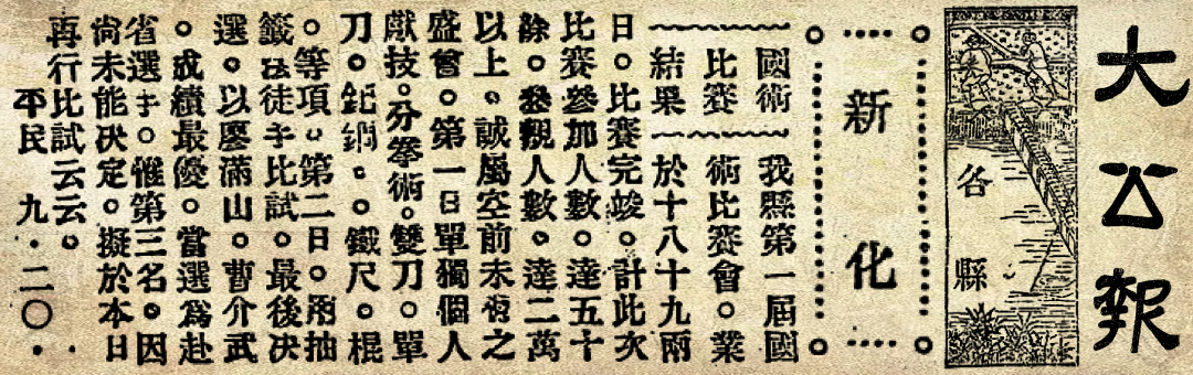 1932年9月长沙大公报刊载“国术比赛结果”新闻